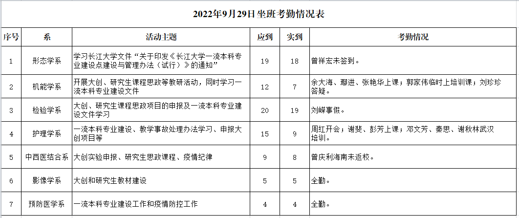 现将星空网页版部9月29日下午各系坐班考勤情况予以公示。